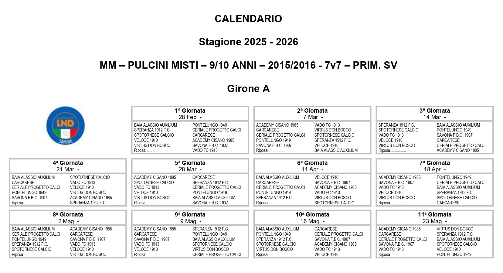 Stagione 2025/26 Prim.Sv